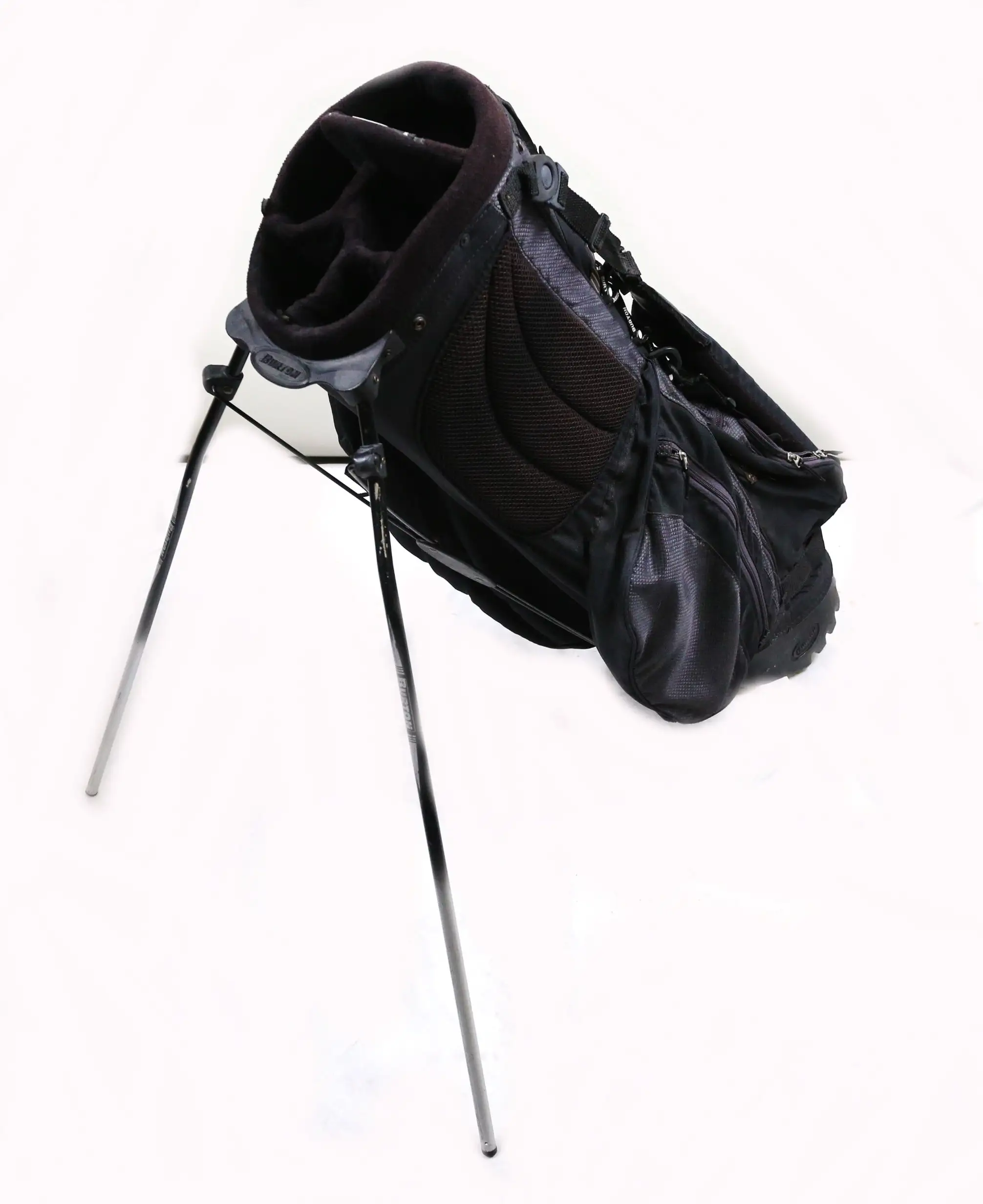 GOOD – This golf bag is in good condition. There is average wear on the exterior of the bag from regular use. The bag is sturdy and the zippers are fully functional and have some wear from regular use and storage.
