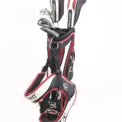 Wilson Staff FG Tour 1w, 3w, 7i, 9i, PW, Putter RH Kids Club Set Red Stand Bag