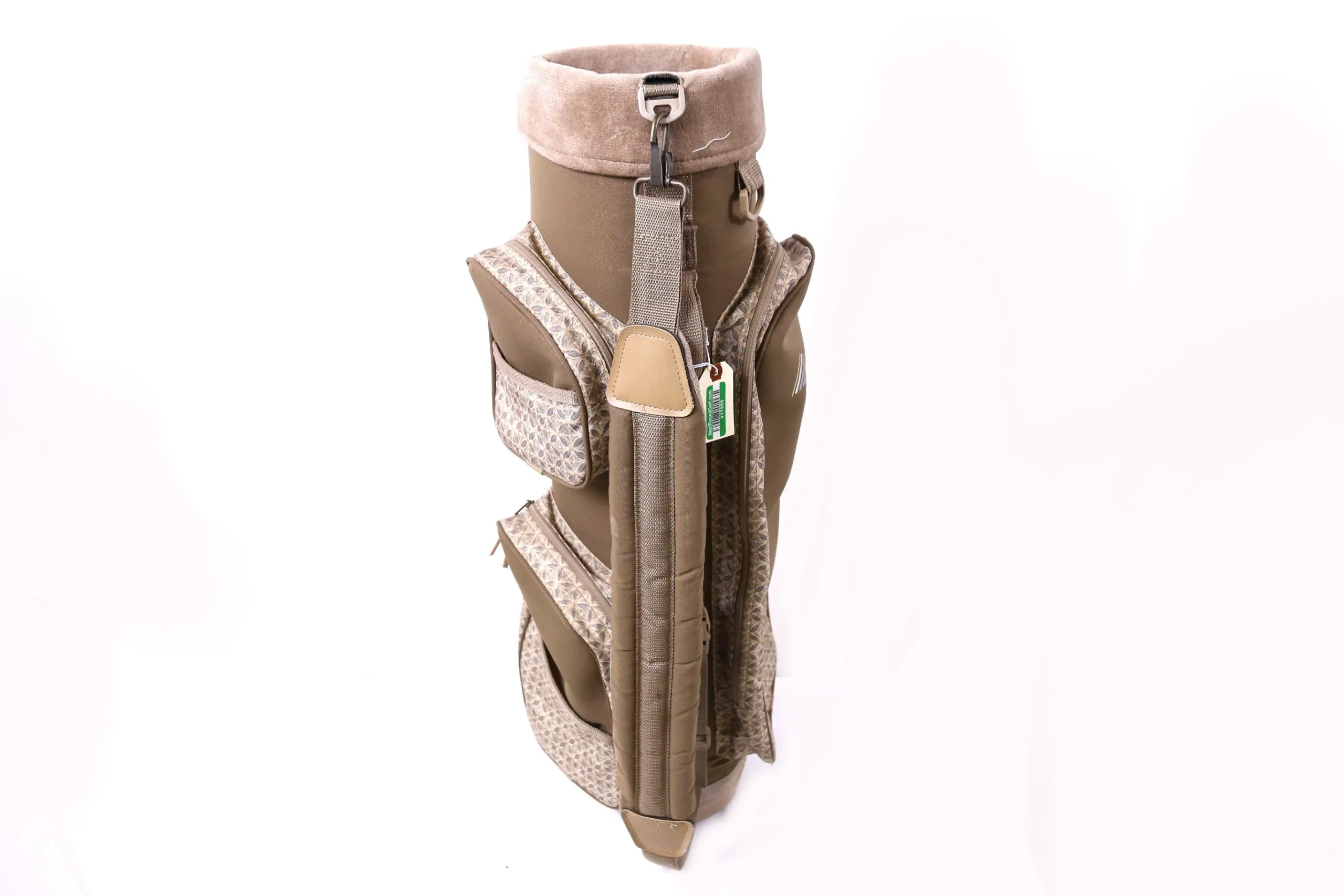 VERY GOOD/GOOD- 8 – This golf bag is in good condition. The exterior of the bag contains little wear from use. The stand and zippers are fully functional and have light wear from use and storage. Please see photos for more detail.